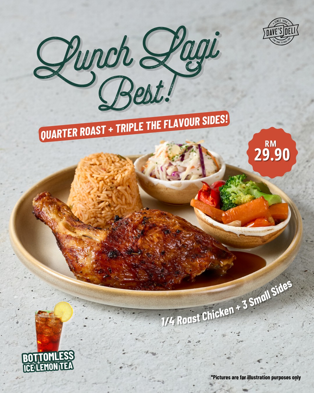 ¼ Roast Chicken + 3 Small Sides – RM29.90